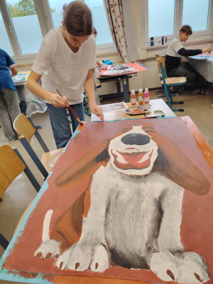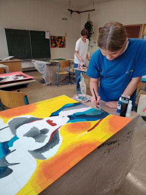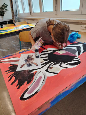 In der Unverbindlichen Übung "Kreatives Gestalten" zeigten die Schüler, dass sie mit Farbe und Pinsel gekonnt umgehen können. Tolle Rastervergrößerungen zieren nun die Wände der Schulküche und des Bewegungsraumes.