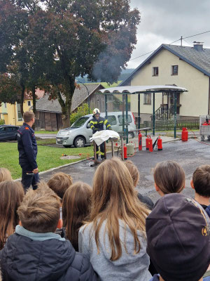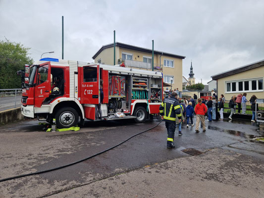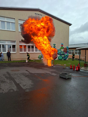 Die örtliche Feuerwehr besuchte unsere Schule und erklärte den Schülerinnen und Schüler, wie man sich in gefährlichen Brandsituationen richtig verhält. Dabei durften sie das Feuerwehrauto erkunden, mit der Wärmebildkamera und der Spreizzange arbeiten und selbst mit dem Schlauch löschen. Auch die Lehrerinnen und Lehrer erhielten eine Auffrischung im Umgang mit Feuerlöschern und konnten das Löschen selbst ausprobieren.