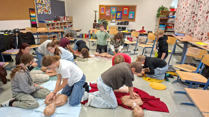 In einem zweistündigen Workshop lernen unsere Schülerinnen und Schüler die Grundlagen der Wiederbelebung und üben, im Notfall richtig zu handeln. So stärken wir das Vertrauen, in einer Notsituation sicher und beherzt eingreifen zu können.